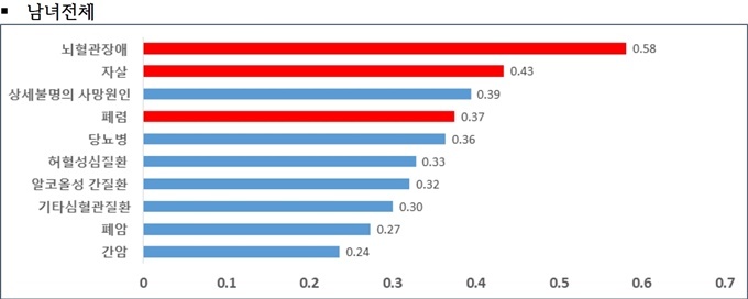 ¶Ç ¼Òµæ¼öÁØ °£ ±â´ë¼ö¸í °ÝÂ÷¿¡ ±â¿©ÇÏ´Â ÁÖ¿ä »ç¸Á¿øÀÎÀº ³úÇ÷°üÀå¾Ö, ÀÚ»ì, Æó·Å, ´ç´¢º´ ¼øÀ̾ú´Ù.