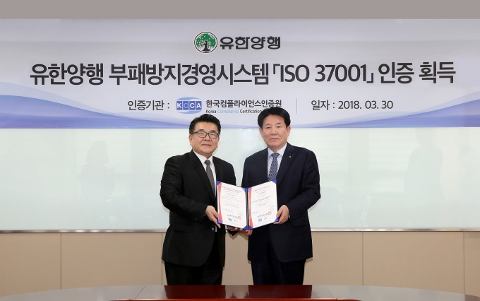 À¯ÇѾçÇà(´ëÇ¥ ÀÌÁ¤Èñ)ÀÌ ºÎÆÐ¹æÁö°æ¿µ½Ã½ºÅÛ ±¹Á¦Ç¥ÁØÀÎ ISO 37001 ÀÎÁõÀ» ȹµæÇß´Ù°í 30ÀÏ ¹àÇû´Ù.