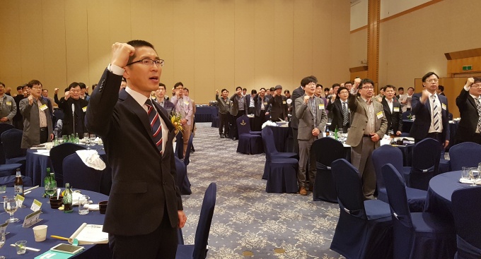 ÀÌÇʼö ȸÀåÀº “ÃÖ´ëÁý ½ÅÀÓ ÀÇÇùȸÀå ´ç¼±ÀÚ¸¦ Áß½ÉÀ¸·Î ±¹¹Î°Ç° ¼öÈ£¿Í ȸ¿ø ±ÇÀÍÀ» À§ÇØ ÈûÀ» ¸ð¾Æ¾ß Çϸç ÇѸ¶À½ ÇÑ ¶æÀ¸·Î ³ª¾Æ°¡¾ß ÇÑ´Ù”°í ÇÇ·ÂÇß´Ù.