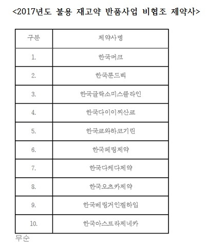 ¾à»ç´Üü°¡ Àç°íÀǾàǰ ¹Ýǰ»ç¾÷¿¡ ÇùÁ¶ÇÏÁö ¾ÊÀº Á¦¾à»ç ¸í´ÜÀ» Àü°Ý °ø°³Çß´Ù. ¸®½ºÆ®¿¡ Æ÷ÇÔµÈ Á¦¾à»ç 10°÷Àº ¸ðµÎ ´Ù±¹Àû Á¦¾à»ç¿´´Ù.