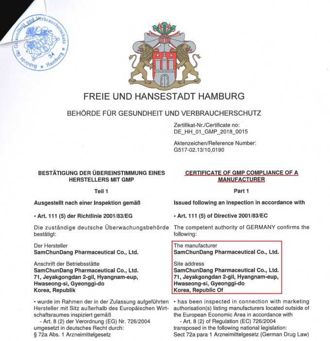 »ïõ´çÁ¦¾à(´ëÇ¥ ÀüÀμ®)Àº ÃÖ±Ù µ¶ÀÏ º¸°Ç¼º(BGV : Behörde für Gesundheit und Verbraucherschutz)À¸·ÎºÎÅÍ ¹«±ÕÁ¡¾ÈÁ¦ ¿ÏÁ¦ÀǾàǰ Á¦Á¶ ¹× ǰÁú°ü¸®±âÁØ¿¡ ´ëÇØ EU GMP ÀçÀÎÁõÀ» ȹµæÇß´Ù°í 18ÀÏ ¹àÇû´Ù. ¿µ±¹ MHRA¿¡ ÀÌ¾î µÎ¹øÂ°´Ù.