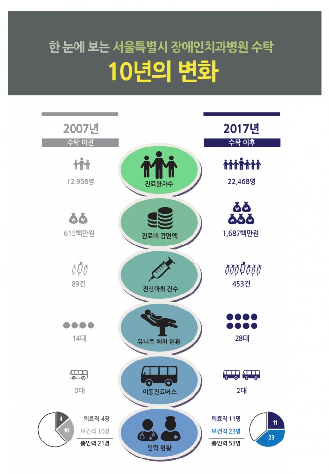 ¼¿ï´ëÄ¡°úº´¿ø ÃøÀº "ã¾Æ°¡´Â Àå¾ÖÀÎÀ̵¿Ä¡°úÁø·á»ç¾÷À» ÅëÇØ Áö³ ÇÑ ÇØ¿¡¸¸ 1¸¸4400¸í, ÇöÀç±îÁö ´©Àû 9¸¸8357¸í¿¡ ´ëÇÑ À̵¿Áø·á¸¦ ½ÃÇàÇß´Ù"¸ç "ÇâÈÄ¿¡´Â ¼¿ï´ëÄ¡°úº´¿øÀÇ EMR ÀÌÀüÀ¸·Î Àå¾ÖÀÎÀü¿ë Ä¡°ú EMR½Ã½ºÅÛÀ» ±¸Ãà, ±¹³» Àå¾ÖÀÎ ±¸°º¸°Çȯ°æ ¹ßÀü¿¡ ±â¿©ÇØ ³ª°¥ °èȹ"À̶ó°í ¹àÇû´Ù.