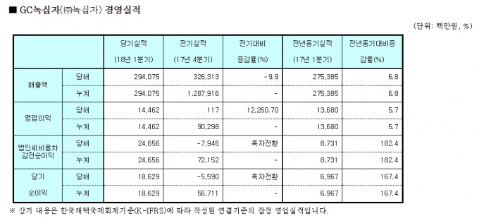 29ÀÏ GC³ì½ÊÀÚ´Â ÃÖ±Ù ¿¬°áÀ繫Á¦Ç¥ ±âÁØ ¿ÃÇØ 1ºÐ±â ¿µ¾÷ÀÌÀÍÀÌ 145¾ï¿øÀ¸·Î Àü³â °°Àº ±â°£º¸´Ù 5.7% Áõ°¡ÇÑ °ÍÀ¸·Î ÀáÁ¤ Áý°èµÆ´Ù°í °ø½ÃÇß´Ù.