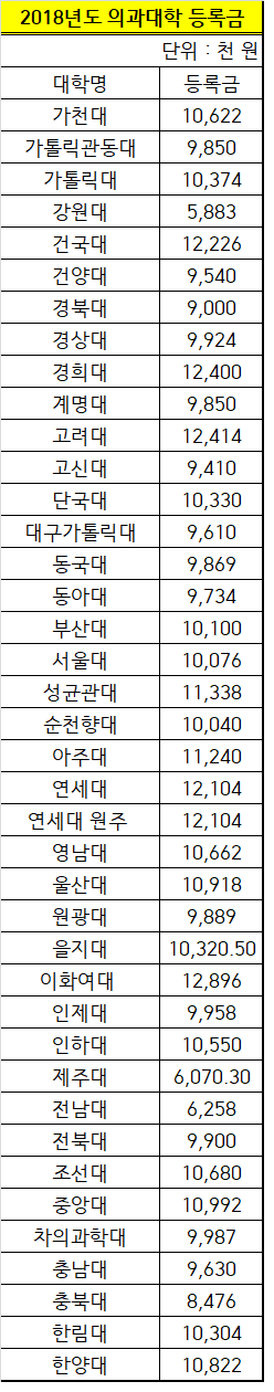 ƯÈ÷ Àü±¹ Àǰú´ëÇÐ ¹× ÀÇÇÐÀü¹®´ëÇпø µî·Ï±ÝÀÌ ¿ÃÇØµµ ¾î±è¾øÀÌ 1000¸¸ ¿ø´ë¸¦ ³Ñ¾î¼¹´Ù.