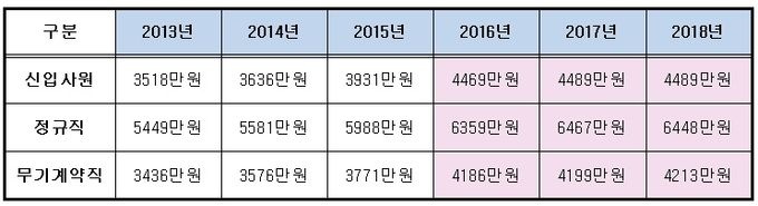 2013³â 3436¸¸¿ø, 2014³â 3576¸¸¿ø, 2015³â 3771¸¸¿øÀ̾úÁö¸¸ 2016³â¿¡´Â 4186¸¸¿øÀ¸·Î ¹«·Á 400¸¸¿ø ÀÌ»ó ÀÎ»óµÆ´Ù.