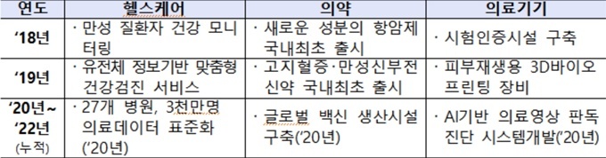 ±¸Ã¼ÀûÀ¸·Î´Â ¿ÃÇØ ÇコÄɾî·ÀǾà·ÀÇ·á±â±â ºÐ¾ß¿¡¼ ¸¸¼ºÁúȯÀÚ °Ç° ¸ð´ÏÅ͸µ, »õ·Î¿î ¼ººÐÀÇ Ç×¾ÏÁ¦ ±¹³» ÃÖÃÊ Ãâ½Ã, ½ÃÇèÀÎÁõ½Ã¼³ ±¸Ãà µî¿¡ ³ª¼±´Ù.