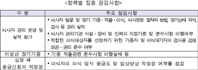 ÁßÁ¡ Á¡°ËÇ׸ñÀº ³ú»çÀÚ °ü¸® ¿î¿µ·½ÇÀû, ³ú»çÀÚ °ü¸® ¿î¿µ·½ÇÀû, ¹Ì¼º³âÀÚ Àå±â ±âÁõ·ÀûÃâ ÀýÂ÷ Áؼö¿©ºÎ, ½ÉÀå·Æó À̽ÄÀÚÀÇ ÀÀ±Þµµ ÀûÇÕ¼º ¿©ºÎ µîÀÌ´Ù.