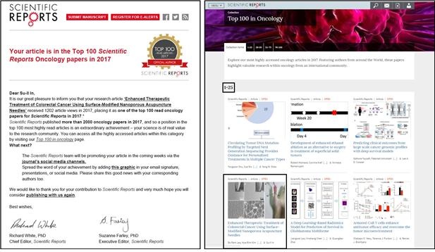 ÇØ´ç ¿¬±¸°á°ú´Â ¼¼°èÀû ÇмúÁö ‘Scientific Reports’ 2017³â 10¿ùÈ£¿¡ °ÔÀçµÆÀ¸¸ç ¾Ï °ü·Ã ³í¹®(oncology) Áß 1202¹ø ¿¶÷µÅ Çѹæ ħ ºÐ¾ß¿¡¼ À¯ÀÏÇÏ°Ô ‘2017 Scientific Reports Top 100 in oncology’ ¼±Á¤µÆ´Ù.