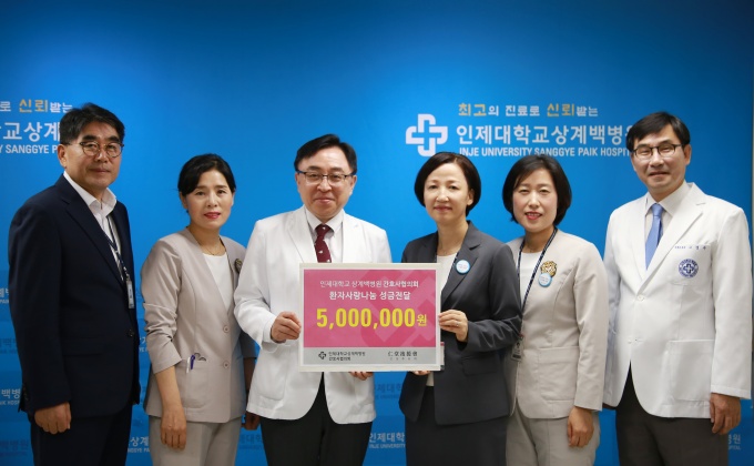 ÀÎÁ¦´ëÇб³ »ó°è¹éº´¿ø °£È£»çÇùÀÇȸ(ȸÀå ³ë¸íÀº)´Â Áö³ 7ÀÏ ÀδçÈÄ¿øÈ¸¿¡ ȯÀÚ¸¦ À§ÇÑ ¼º±Ý 500¸¸¿øÀ» Àü´ÞÇß´Ù.