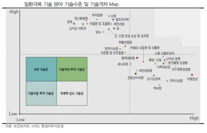 Çѱ¹Àº Áٱ⼼Æ÷ ¹× ÀÇ·á±â±â °³¹ß¿¡´Â °æÀï·Â °ÝÂ÷°¡ Æò±Õ ¼öÁØÀ¸·Î Æò°¡µÇÁö¸¸, Çõ½Å ÀǾàǰ °³¹ß°ú À¯Àüü ÀÓ»óÀÀ¿ë ºÐ¾ß¿¡¼´Â ±âÃâ°ÝÂ÷ ÆøÀÌ ´õ Å« °ÍÀ¸·Î ºÐ¼®µÆ´Ù.