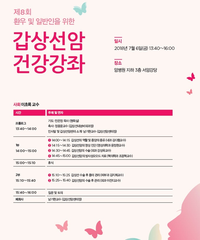 Âü°¡ ¹× ÀÚ¼¼ÇÑ ¹®ÀÇ´Â ¿¬¼¼¾Ïº´¿ø °©»ó¼±¾Ï¼¾ÅÍ(02-2228-4211, 4219, 4220)·Î ÇÏ¸é µÈ´Ù. |