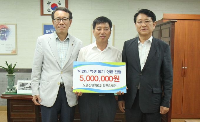 [µ¥Àϸ®¸Þµð ¹Ú´ëÁø ±âÀÚ] ¿À¼Û÷´ÜÀÇ·á»ê¾÷ÁøÈïÀç´Ü(ÀÌ»çÀå ¹Ú±¸¼±) ÀÓÁ÷¿øÀÌ ³úÁ¹ÁßÀ¸·Î Åõº´ ÁßÀÎ Çлý¿¡°Ô ¼º±Ý 500¸¸¿øÀ» Àü´ÞÇß´Ù.