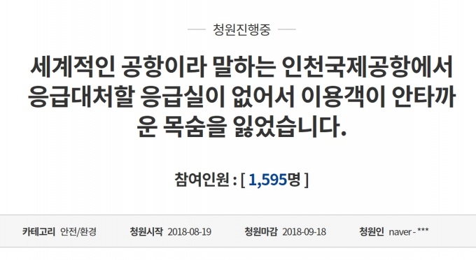 û¿øÀÎÀº “ÀÎõ±¹Á¦°øÇ׿¡¼­ À̿밴ÀÌ ÀÀ±Þ½Ã¼³ ¹× ÀÀ±Þ´ëó¸¦ ÇÒ ´ÚÅÍÇï±â°¡ ¾ø¾î ¾Æ±î¿î ¸ñ¼ûÀ» ÀÒ¾ú´Ù”°í ºÐÅëÀ» ÅͶ߷ȴÙ.