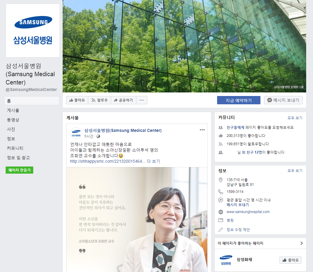 »ï¼º¼¿ïº´¿ø ÆäÀ̽ººÏ(www.facebook.com/SamsungMedicalCenter)Àº ¾î·Á¿î Áúȯ Á¤º¸¸¦ ȯÀÚ´Â ¹°·Ð ÀϹÝÀε鿡°Ôµµ Á¤È®Çϰí ÀÌÇØÇϱ⠽±µµ·Ï ÀÏ·¯½ºÆ®¿Í µ¿¿µ»ó µîÀ¸·Î Á¦°øÇϰí ÀÖ´Ù.
