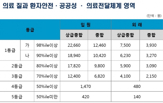 ¿ì¼± ÀÇ·áÁú°ú ȯÀÚ¾ÈÀü, °ø°ø¼º, Àü´Þü°è¿¡¼ ÃÖ°íÁ¡¼öÀÎ 1µî±Þ °¡¸¦ ȹµæÇßÀ» °æ¿ì, »ó±ÞÁ¾ÇÕº´¿øÀº ÀÔ¿ø ȯÀÚ ´ç 2¸¸2660¿ø, ¿Ü·¡ ȯÀÚ ´ç 7500¿øÀÇ Áö¿ø±ÝÀ» ¼ö°¡·Î ¹Þ°Ô µÈ´Ù. Á¾ÇÕº´¿øÀº °¢°¢ 1¸¸2460¿ø, 3930¿øÀ¸·Î Ã¥Á¤µÈ´Ù.