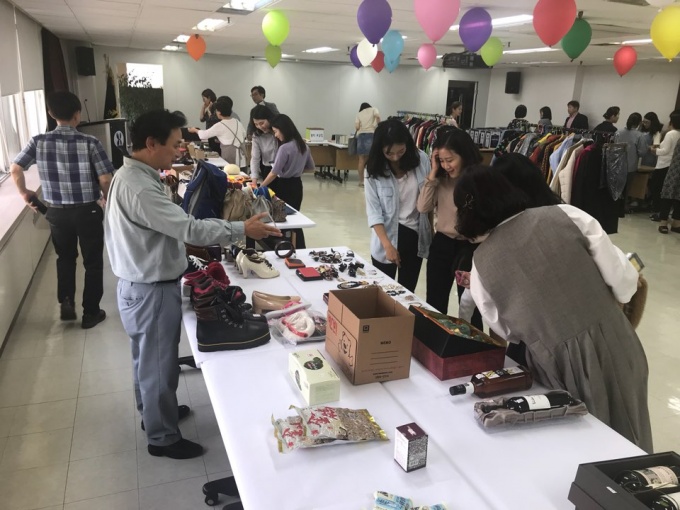 À̳¯ Çà»ç¿¡¼ Á÷¿øµéÀº ÀÚ¹ßÀûÀ¸·Î ÀÇ·ù, ÀâÈ, °¡ÀüÁ¦Ç° µî ¾à 300Á¡ÀÇ ¹°Ç°À» ±âÁõÇß´Ù. ¶ÇÇÑ Çà»çÀå Àα٠³²´ë¹®½ÃÀå ¼Ò»ó°øÀεéÀÌ Á÷Á¢ Âü¿©ÇØ Ãß¼®¸ÂÀÌ Á¦¼ö¿ëǰ ¹× Àç·¡½ÃÀå »óǰÀ» ¼±º¸¿´´Ù.