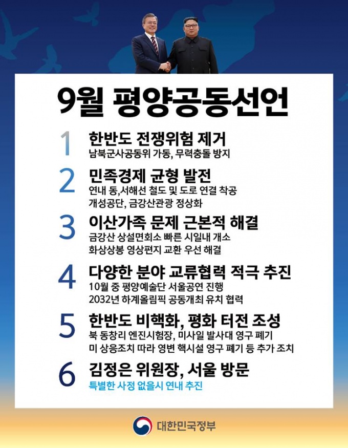 ±×·¯³ª ±Ý³â 4¿ù ¹®ÀçÀÎ ´ëÅë·É°ú ±èÁ¤Àº ±¹¹«À§¿øÀåÀÇ ³²ºÏ Á¤»óȸ´ã¿¡ À̾î À̹ø 9¿ù Æò¾ç°øµ¿¼±¾ðÀ» °è±â·Î ³²ºÏ °£ º¸°ÇÀÇ·áºÐ¾ß ±³·ù¿Í Çù·ÂÀ» À§ÇÑ ±¸Ã¼ÀûÀÎ ³íÀǰ¡ À̾îÁú °ÍÀ¸·Î Àü¸ÁµÈ´Ù.