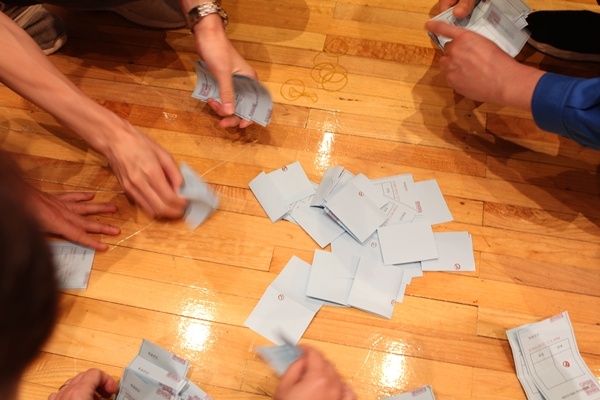 ºñ´ëÀ§ ±¸¼º Âù¹Ý ÀǰßÀ» µéÀº µÚ ÅõÇ¥ ¹æ½ÄÀ» ¹«±â¸í ºñ°ø°³·Î °áÁ¤ÇÑ ÈÄ Àü±¹ ´ëÀÇ¿øµéÀÌ ÅõÇ¥¸¦ À§ÇØ ¸íºÎ¸¦ È®ÀÎÇÏ°í ¿ëÁö¸¦ ¹Þ°í ÀÖ´Ù.