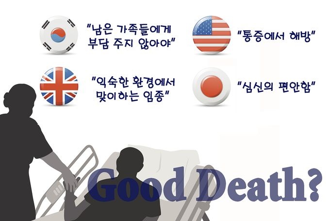 ÀϺ»Àº ‘½ÅüÀû, Á¤½ÅÀû Æí¾ÈÇÔ’, ‘Èñ¸ÁÇÏ´Â °÷¿¡¼ ÀÓÁ¾’À» ¿ì¼± ¼øÀ§·Î ²Å¾ÒÀ¸¸ç ¿µ±¹Àº ‘Àͼ÷ÇÑ È¯°æ¿¡¼’, ‘Á¸¾ö°ú Á¸°æÀ» À¯ÁöÇÑ Ã¤’, ‘°¡Á·, Ä£±¸¿Í ÇÔ²²’, ‘°íÅë ¾øÀÌ’ Á×¾î °¡´Â °Í’ 4°³¸¦ ÁÁÀº Á×À½À¸·Î Á¤ÀÇÇß´Ù.