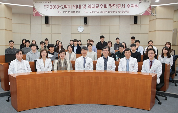 [µ¥Àϸ®¸Þµð ¹Ú´Ù¿µ ±âÀÚ] °í·Á´ëÇб³ Àǰú´ëÇÐ(ÇÐÀå ÀÌÈ«½Ä)°ú °í´ëÀÇ´ë ±³¿ìȸ(ȸÀå ³ªÃá±Õ)°¡ Áö³ 11ÀÏ ¹®¼÷ÀÇÇаü À±º´ÁÖȦ¿¡¼ ‘2018Çг⵵ 2Çбâ ÀåÇÐÁõ¼ ¼ö¿©½Ä’À» °³ÃÖÇß´Ù.