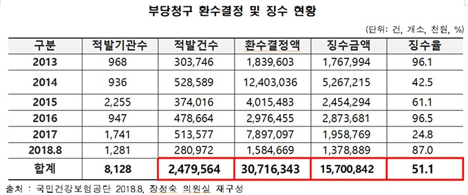 ºÎ´çû±¸·Î ÀÎÇØ ȯ¼ö°¡ °áÁ¤µÈ ±Ý¾×Àº ÃÖ±Ù 5³â°£ ÃÑ 307¾ï¿ø¿¡ ´ÞÇßÀ½¿¡µµ ½ÇÁ¦ ¡¼öµÈ ±Ý¾×Àº 157¾ï¿øÀ¸·Î ¡¼öÀ²Àº 51%¿¡ ±×Ä£ °ÍÀ¸·Î ÆÄ¾ÇµÆ´Ù.