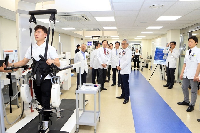 ·Îº¿ÀçȰġ·á¼¾ÅÍ¿¡´Â »óÁö·Îº¿Ä¡·áÀåºñ(Robotic Upper Extremity Training System)¿Í Erigo Àåºñµµ ¼³Ä¡µÅ ¿î¿µ ÁßÀÌ´Ù. »óÁö·Îº¿Ä¡·áÀåºñ´Â ´ëÇü È¸é ¼ÓÀÇ ½ÇÁ¦ »ýȰ°ú À¯»çÇÑ »ïÂ÷¿ø °¡»óÇö½Ç ȯ°æ ¼Ó¿¡¼ ÆÈ º¸Á¶±âÀÇ µµ¿òÀ» ¹ÞÀ¸¸ç, ÀÚ½ÅÀÇ ½Åü´É·Â ¹üÀ§ ³»¿¡¼ ÃÖ´ëÇÑ ÀçȰġ·á ¹ÞÀ» ¼ö ÀÖ´Ù.