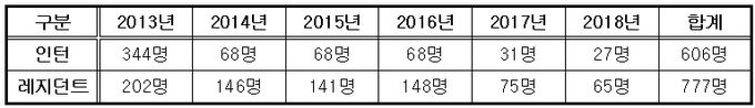 ÀÌ·¸°Ô Áö³ 6³â µ¿¾È ÁÙÀÎ Á¤¿ø¸¸ ÀÎÅÏ 606¸í, ·¹Áö´øÆ® 777¸í¿¡ ´ÞÇÑ´Ù. ¼ö·Ãº´¿øµéÀÇ Çϼҿ¬¿¡µµ Á¤¿ø°¨Ãà Á¤Ã¥Àº Èçµé¸² ¾øÀÌ ÁøÇàµÆ´Ù.
