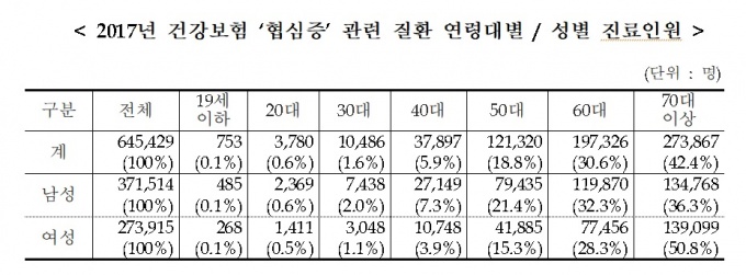 Àα¸ 10¸¸¸í ´ç Çù½ÉÁõ Áø·áȯÀÚ¸¦ ºÐ¼®Çϸé 50´ëºÎÅÍ ±Þ°ÝÇÏ°Ô Áõ°¡Çϰí ÀÖÀ¸¸ç, 70´ë ÀÌ»óÀÌ °¡Àå ¸¹¾Ò´Ù.