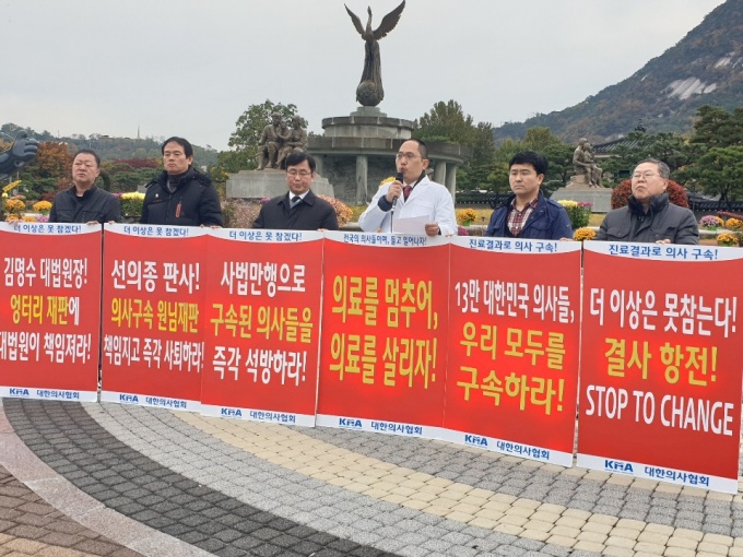 [µ¥Àϸ®¸Þµð ¹Ú±Ùºó ±âÀÚ] Áø·áÀÇ»ç 3ÀÎ ±¸¼Ó »çÅÂ¿Í °ü·Ã, ¹ý¿ø ¾Õ¿¡¼ »è¹ßÀ» ÇÑ ´ëÇÑÀÇ»çÇùȸ(ȸÀå ÃÖ´ëÁý)°¡ 28ÀÏ ¿ÀÀü¿¡´Â û¿Í´ë ¾Õ¿¡¼ ½ÃÀ§¸¦ ¹ú¿´´Ù.
