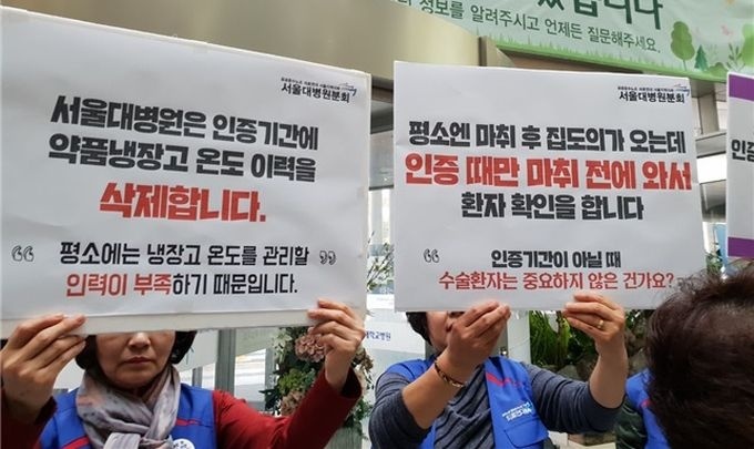¼¿ï´ëº´¿ø ³ë»ç´Â ³ëµ¿½Ã°£ ´ÜÃàÀ» À§ÇÑ ¿¬Àå±Ù¹« Ãà¼Ò¿Í ÀηÂÃæ¿øÀ» ³õ°íµµ ´ë¸³Çß´Ù. ÀÌ °úÁ¤¿¡¼ °£È£»ç ½ºÄÉÁìÇ¥ Á¶ÀÛ µîÀÇ ÀÇȤÀÌ ºÒ°ÅÁö±âµµ Çß´Ù.