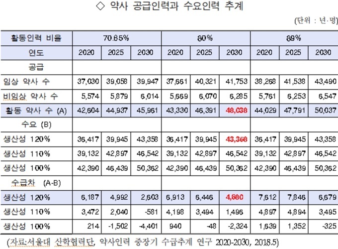 ¼¼ºÎÀûÀ¸·Î´Â ÀΰøÁö´É(AI) µî º¸°ÇÀÇ·á±â¼ú ¹ßÀü¿¡ µû¸¥ ÀÏÀÚ¸® ´ëü ¹× °¨¼Ò µîÀ» Á¾ÇÕÇÒ ¶§ ÁßÀå±âÀûÀ¸·Î ¾à»ç ÀηÂÀÌ ºÎÁ·ÇÑ »óȲÀÌ ¾Æ´Ï¶ó´Â Á¡, ¿À´Â 2030³â ¾à»ç °ø±ÞÀηÂÀº ¼ö¿äÀηº¸´Ù ÃÖ´ë 4680¸í ¸¹À» °ÍÀ¸·Î ¿¹»óµÈ´Ù´Â Á¡ µîÀÌ °Å·ÐµÆ´Ù.