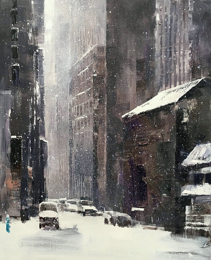 ºû¿¡ ÀÇÇØ »ý±â´Â ±×¸²ÀÚ¿Í µé²ÉÀÌ ¼·Î ¾ûÄÑÀÖ´Â ¸ð½ÀÀ» ´Ù¾çÇÏ°Ô Ç¥ÇöÇϱâ À§ÇØ À¯È¹°°¨À» »ç¿ëÇßÀ¸¸ç, ÀÛǰÀÇ ±íÀ̰¨°ú ¹Ðµµ¸¦ ³ôÀ̱â À§ÇØ ¸¹Àº µ¡Ä¥ ÀÛ¾÷À» Çß´Ù.