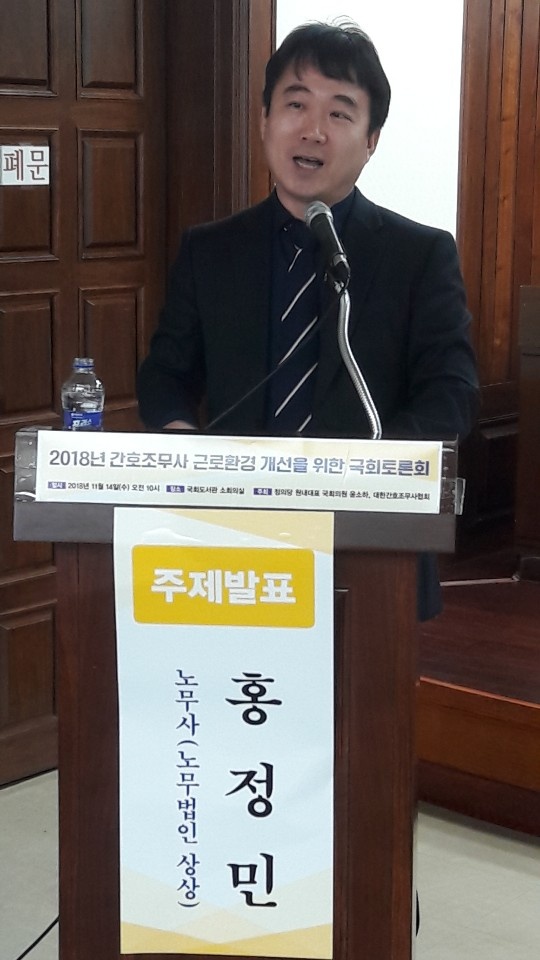 È«Á¤¹Î ³ë¹«»ç´Â "2018³â ÃÖÀúÀÓ±ÝÀÌ ÀλóµÆÁö¸¸ °£È£Á¶¹«»çÀÇ ÃÖÀúÀÓ±Ý ¹Ì¸¸À²ÀÌ ³ô¾ÆÁ³´Ù"¸ç "¼ºÈñ·Õ ¹× Æø·Â ÇÇÇØ¿¡ ´ëÇÑ ¹ýÀû·Á¦µµÀû ±¸Á¦°¡ 1%´ë¿¡ ºÒ°úÇÑ °ÍÀº Áö¼ÓÀûÀÌ°í ¹Ýº¹Àû ÇÇÇØ¸¦ ¾ç»êÇÒ ¼ö ÀÖ´Ù"°í ¸»Çß´Ù.