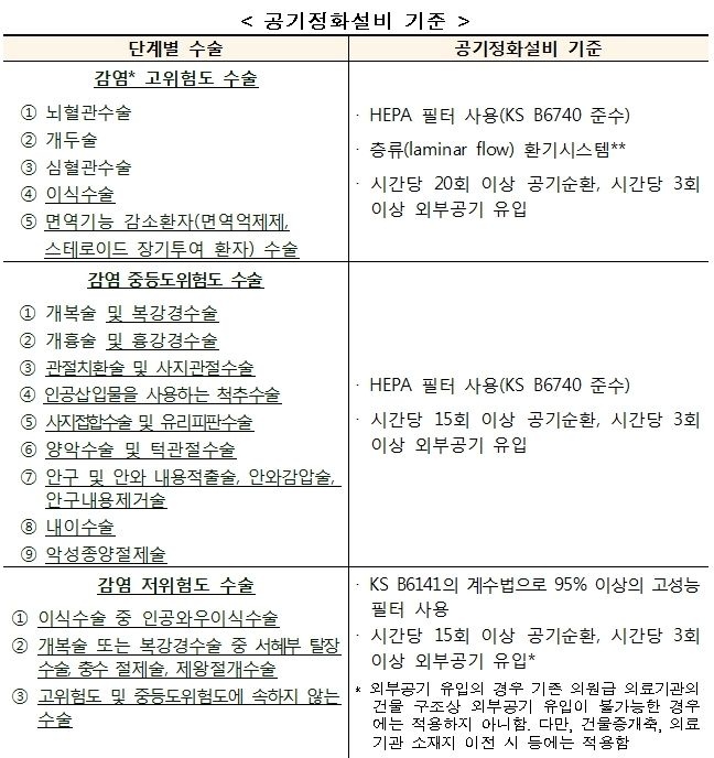¼ö¼ú ÁßÁõµµ¿¡ µû¶ó ¼³Ä¡ÇØ¾ß ÇÏ´Â °ø±âÁ¤È¼³ºñ°¡ ´Ù¸¥ ¸¸Å °¡Àå ¹Î°¨ÇÑ »ç¾ÈÀ̾ú°í, ³»´Þ ¹ý ½ÃÇàÀ» ¾ÕµÎ°í Àϼ± ÀÇ·á±â°üµéÀÇ È¥¼±À» ¹æÁöÇϱâ À§ÇØ ±× Á¾·ù¸¦ ¸íÈ®È÷ ±¸ºÐÇß´Ù.