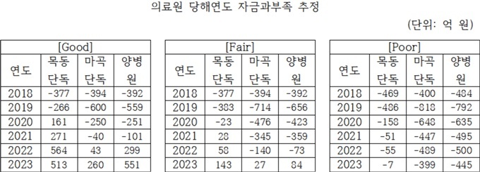 ¾çº´¿ø üÁ¦·Î °¬À» ¶§ ÃÖ¾ÇÀÇ °æ¿ì ¿À´Â 2023³â 445¾ï¿øÀÇ ÀûÀÚ°¡ ³¯ °ÍÀ¸·Î Ãß°èÇß°í, °°Àº ÇØ ‘Good’ 551¾ï¿ø, ‘Fair’ 84¾ï¿ø ÀÇ·á¼öÀÍÀÌ ÀÖÀ» °ÍÀ¸·Î ¿¹»óÇß´Ù.