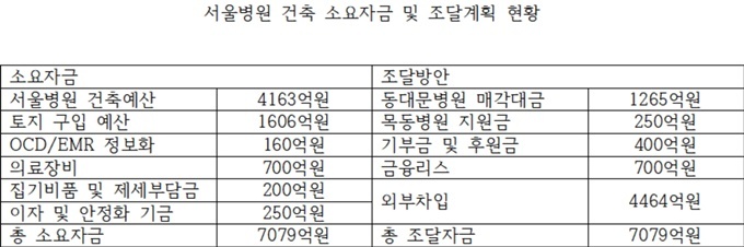 ¼¿ïº´¿ø °ÇÃà ¼Ò¿äÀÚ±Ý ¹× Á¶´Þ°èȹ ÇöȲ¿¡ µû¸£¸é ÃÑ ¼Ò¿äÀÚ±Ý ¹× Á¶´ÞÀÚ±ÝÀº 7079¾ï¿øÀÌ´Ù.