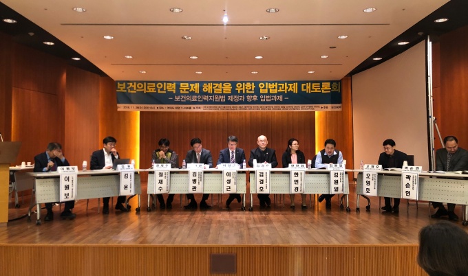 º¸°Çº¹ÁöºÎ·´ëÇѺ´¿øÇùȸ·´ëÇѰ£È£Çùȸ·Àü±¹º¸°ÇÀÇ·á»ê¾÷³ëµ¿Á¶ÇÕ µî ÀÇ·á ¹× À¯°ü ´ÜüµéÀº 11¿ù28ÀÏ Å¿µ°Ç¼³ T ¾ÆÆ®È¦¿¡¼ ‘º¸°ÇÀÇ·á Àη¹®Á¦ ÇØ°áÀ» À§ÇÑ ÀÔ¹ý°úÁ¦ ´ëÅä·Ðȸ’¸¦ °³ÃÖÇÏ°í º¸°ÇÀÇ·áÀηÂÁö¿ø¹ý Á¦Á¤ Çʿ伺¿¡ ´ëÇÑ ÀǰßÀ» ³ª´³´Ù.