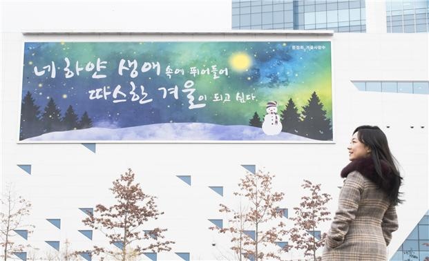 [µ¥Àϸ®¸Þµð Á¤½Â¿ø ±âÀÚ] ±¹¹Î°Ç°º¸Çè°ø´Ü(ÀÌ»çÀå ±è¿ëÀÍ)Àº ÃÖ±Ù »îÀÇ Èñ¸Á°ú ÇູÀÇ ¸Þ½ÃÁö¸¦ Àü´ÞÇÏ´Â ‘Çູ±ÛÆÇ’ °Ü¿ïÆíÀ» ¿øÁÖ º»»ç ¿Üº®¿¡ ¼³Ä¡Çß´Ù°í ¹àÇû´Ù.