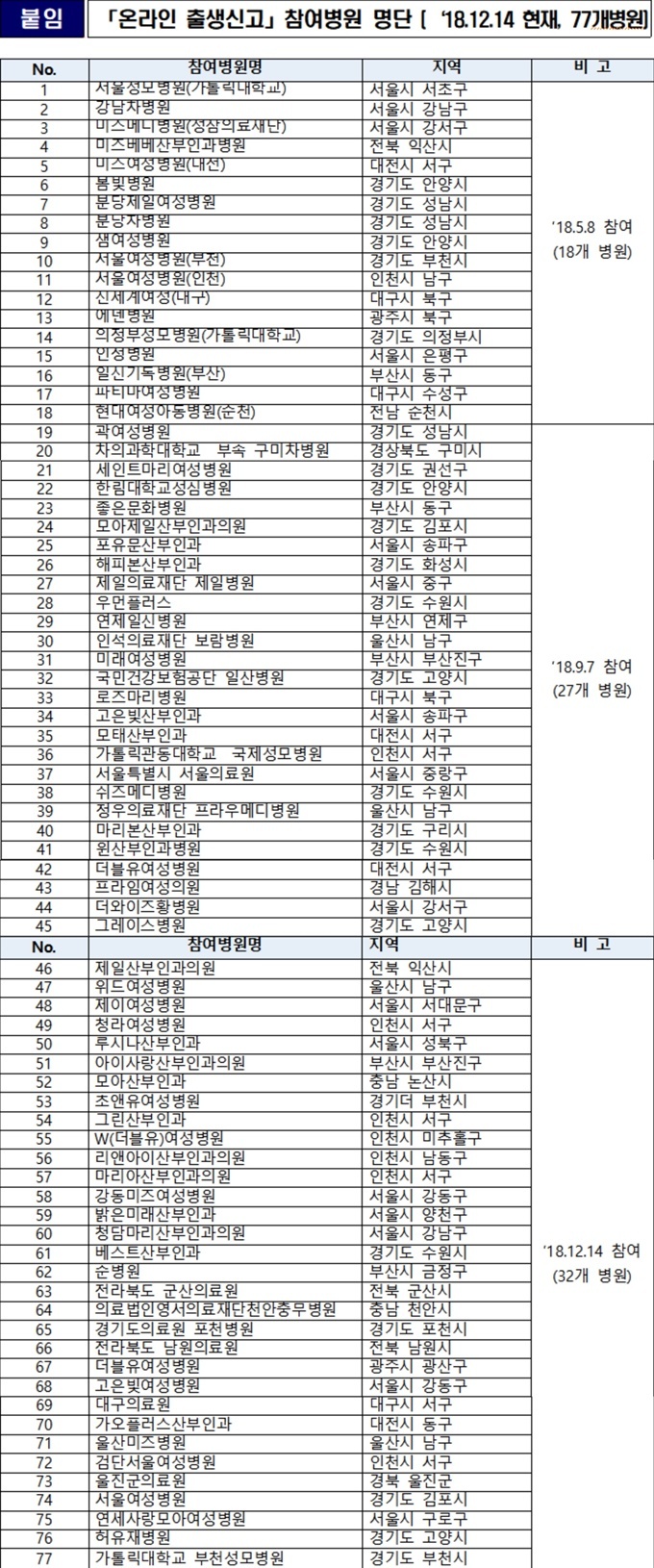 ÇàÁ¤¾ÈÀüºÎ(Çà¾ÈºÎ)´Â 14ÀÏ ¿Â¶óÀÎ Ãâ»ý½Å°í ¼ºñ½º¿¡ Âü¿©ÇÏ´Â º´¿øÀÌ ¿À´ÃºÎÅÍ 45°³¿¡¼ 77°³ º´¿øÀ¸·Î È®´ëµÈ´Ù°í ¹àÇû´Ù.
