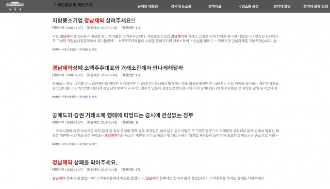 ÁÖÁÖµéÀº û¿Í´ë ±¹¹Îû¿ø °Ô½ÃÆÇ¿¡ ÀÌ °°Àº ±â½ÉÀ§ÀÇ °áÁ¤¿¡ ´ëÇÑ Ç×ÀǼº û¿øÀ» ¿Ã·È´Ù. Áö³ 14ÀϺÎÅÍ ¿À´Ã(17ÀÏ)±îÁö °ÔÀçµÈ û¿ø±ÛÀº 60°ÇÀ» ³Ñ¾î¼¹´Ù.