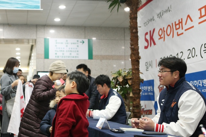 [µ¥Àϸ®¸Þµð ÇÑÇØÁø ±âÀÚ] ÀÎÇϴ뺴¿øÀÌ ¹ÚÁ¤±Ç ¼±¼ö µî SK¿ÍÀ̹ø½º ½ºÅ¸±Þ ¼±¼öµéÀ» ÃÊÃ»ÇØ ÆÒ»çÀÎȸ¸¦ °³ÃÖÇß´Ù°í 21ÀÏ ¹àÇû´Ù.