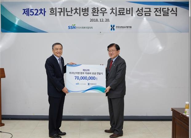 [µ¥Àϸ®¸Þµð ¹Ú±Ùºó ±âÀÚ] °Ç°º¸Çè½É»çÆò°¡¿ø(¿øÀå ±è½ÂÅÃ)Àº ÃÖ±Ù Çѱ¹»çȸº¹ÁöÇùÀÇȸ(¼¿ï ¸¶Æ÷±¸)¿¡¼ Èñ±Í³Ä¡º´À¸·Î Åõº´ ÁßÀΠȯ¿ìµé¿¡°Ô Èñ¸ÁÀ» Àü´ÞÇÏ´Â ‘Á¦52Â÷ Èñ±Í³Ä¡º´ ȯ¿ì µ½±â Ä¡·áºñ ¼º±Ý Àü´Þ½Ä’À» °¡Á³´Ù.