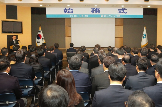 [µ¥Àϸ®¸Þµð ¾çº¸Çý ±âÀÚ] µ¿¾Æ½î½Ã¿À±×·ìÀº 2ÀÏ º»»ç 7Ãþ ´ë°´ç¿¡¼ ÇÑÁ¾Çö µ¿¾Æ½î½Ã¿ÀȦµù½º »çÀå, ¾ö´ë½Ä µ¿¾Æ¿¡½ºÆ¼ ȸÀå, ÃÖÈ£Áø µ¿¾ÆÁ¦¾à »çÀå µî ÀÓÁ÷¿øµéÀÌ Âü¼®ÇÑ °¡¿îµ¥ 2019³âµµ ½Ã¹«½ÄÀ» °¡Á³´Ù.