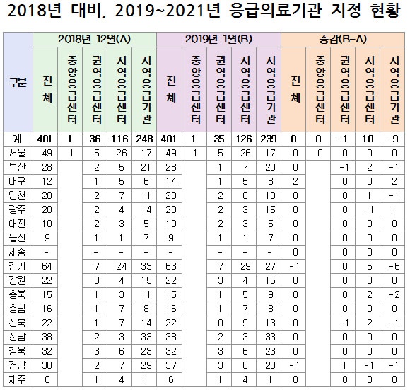 [µ¥Àϸ®¸Þµð ¹é¼ºÁÖ ±âÀÚ] ¿ÃÇØ óÀ½ ½Ç½ÃµÈ ÀÀ±ÞÀÇ·á±â°ü ÀçÁöÁ¤¿¡ µû¶ó 401°³¼Ò°¡ À̸§À» ¿Ã·È´Ù. ±Ç¿ªÀÀ±ÞÀÇ·á¼¾ÅÍ´Â 1°÷ ÁÙ¾ú°í Áö¿ªÀÀ±ÞÀÇ·á¼¾ÅÍ´Â 10°÷ÀÌ ´Ã¾ú´Ù.