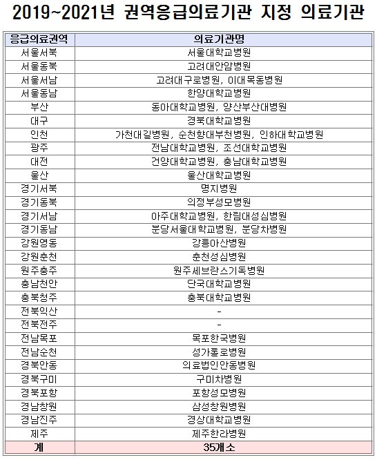 º¸°Çº¹ÁöºÎ(Àå°ü ¹Ú´ÉÈÄ)´Â ¿À´Â 2021³â±îÁö Àü±¹ ±Ç¿ªÀÀ±ÞÀÇ·á¼¾ÅÍ, Áö¿ªÀÀ±ÞÀÇ·á¼¾ÅÍ, Áö¿ªÀÀ±ÞÀÇ·á±â°ü µî ¹ýÁ¤ ÀÀ±ÞÀÇ·á±â°üÀ» »õ·Î ÁöÁ¤, ¿î¿µÇϰí ÀÖ´Ù°í 3ÀÏ ¹àÇû´Ù.