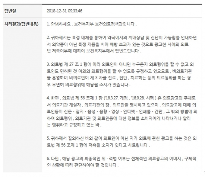 ÀÌ¿¡ ´ëÇØ º¹ÁöºÎ´Â “ÀÇ·á¹ý Á¦ 27Á¶ 1Ç׿¡ µû¶ó ÀÇ·áÀÎÀÌ ¾Æ´Ï¸é ÀÇ·áÇàÀ§¸¦ ÇÒ ¼ö ¾ø°í, ÀÇ·áÀεµ ¸éÇãµÈ °Í ÀÌ¿ÜÀÇ ÀÇ·áÇàÀ§¸¦ ÇÒ ¼ö ¾øµµ·Ï ±ÔÁ¤µÆ´Ù. ºñÀÇ·á±â°üÀ» ¿î¿µÇÏ¸ç ºñÀÇ·áÀÎÀÌ Á¦3ÀÚ¸¦ Áø·á, Áø´Ü, Ä¡·áÇÏ´Â µîÀÇ ÀÇ·áÇàÀ§¸¦ ÇÏ´Â °æ¿ì ¹«¸éÇã ÀÇ·áÇàÀ§¿¡ ÇØ´çµÈ´Ù”°í ȸ½ÅÇß´Ù.