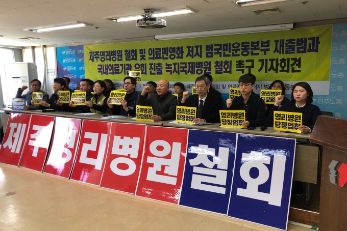º¸°ÇÀÇ·á»ê¾÷³ëµ¿Á¶ÇÕ ³ª¼øÀÚ À§¿øÀåÀº “47º´»ó »ÓÀÎ Á¦ÁÖ¿µ¸®º´¿øÀº ÀÇ·áºñ Æøµî, °Ç°º¸Çè ºØ±«, ÀÇ·á ¾ç±ØÈÀÇ ºÒ¾¾°¡ µÉ °Í"À̶ó¸ç "¹®ÀçÀÎ ´ëÅë·ÉÀº ´çÀå ¿µ¸®º´¿ø Çã°¡¸¦ Ãë¼ÒÇØ¾ß ÇÑ´Ù”°í ¸ñ¼Ò¸®¸¦ ³ô¿´´Ù.