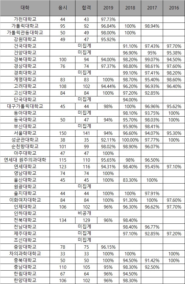µ¥Àϸ®¸Þµð°¡ 24ÀÏ Àü±¹ Àǰú´ëÇзÀÇÇÐÀü¹®´ëÇпøÀÇ Àǻ籹½Ã ÇÕ°Ý·üÀ» Á¶»çÇÑ °á°ú 9°÷ÀÌ ÀÀ½ÃÀÚ Àü¿øÀÌ ÇÕ°Ý, 100% ÇÕ°Ý·üÀ» ±â·ÏÇß´Ù.