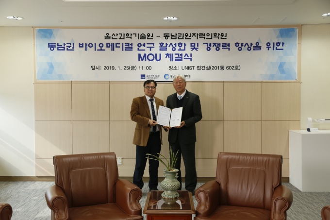 [µ¥Àϸ®¸Þµð ¹Ú±Ùºó ±âÀÚ] µ¿³²±Ç¿øÀÚ·ÂÀÇÇпø(ÀÇÇпøÀå ¹Ú»óÀÏ)°ú ¿ï»ê°úÇбâ¼ú¿ø(UNIST, ÃÑÀå Á¤¹«¿µ)ÀÌ 1¿ù 25ÀÏ ¿ÀÀü 11½Ã ¿ï»ê°úÇбâ¼ú¿ø¿¡¼ ¿¬±¸ºÐ¾ß Çù·Â ¹× »óÈ£ ±³·ù¸¦ À§ÇÑ Çù¾àÀ» ü°áÇß´Ù.
