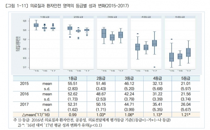 ÀÌ¿¡ µû¸£¸é, ÀÇ·áÁúÆò°¡´Â Àü¹ÝÀûÀ¸·Î º´»ó ±Ô¸ð°¡ Ŭ¼ö·Ï ¼º°ú ¼öÁØÀÌ ³ôÀº »óÅ¿´´Ù. ÀÇ·á Áú°ú ȯÀÚ¾ÈÀü ¿µ¿ªÀÇ °æ¿ì, »ó±ÞÁ¾ÇÕº´¿øÀº Á¾ÇÕº´¿ø 2¹è ¼öÁØÀ¸·Î Å« Â÷À̸¦ º¸ÀÌ´Â ±¸Á¶´Ù.